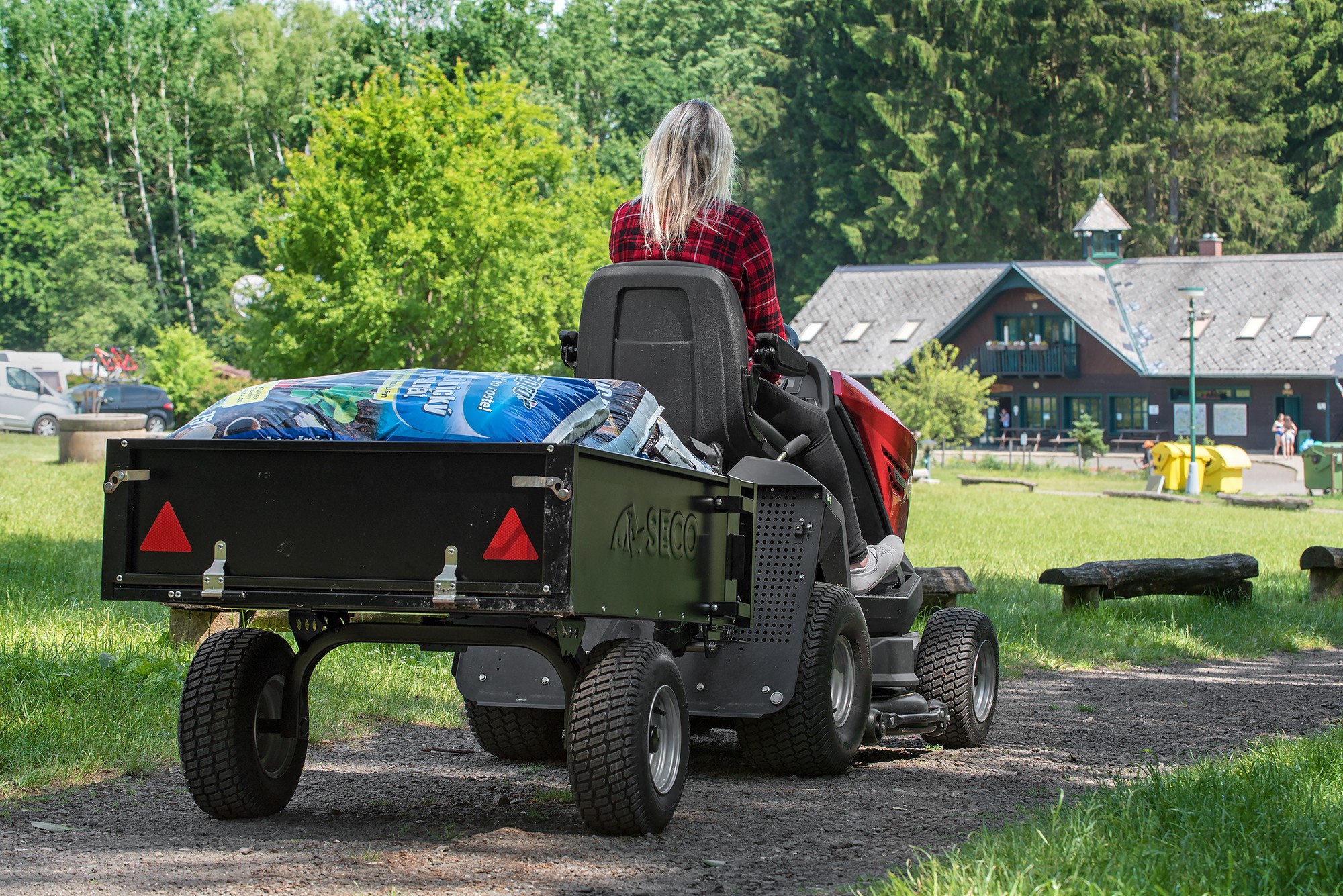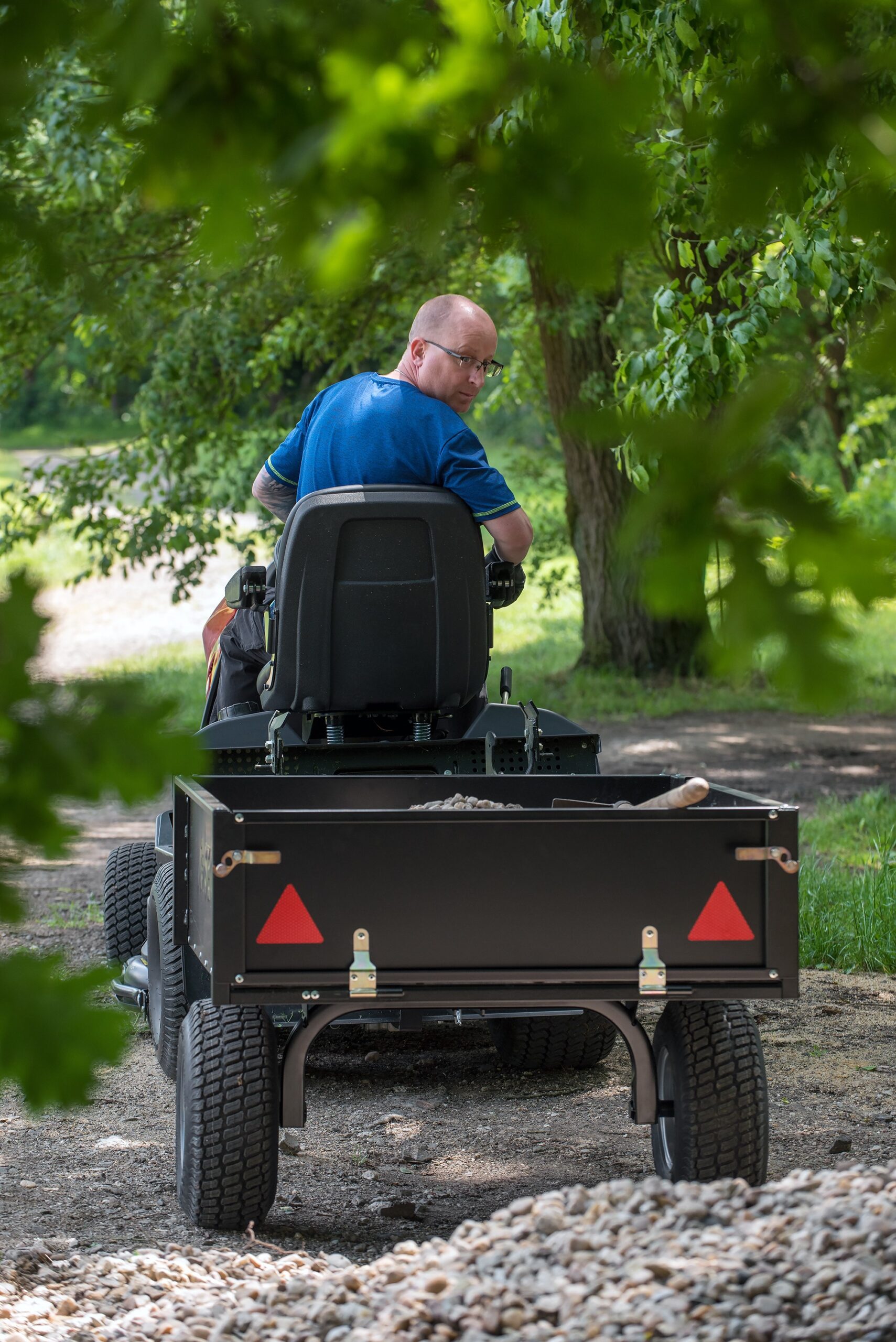 Spolehlivě odveze vše potřebné i nepotřebné: trávu, dřevo, stavební materiály, zahradní odpad atd. – rozměry ložné plochy (D x Š x V) 1 245 x 950 x 300 mm. Nosnost 400 kg. Lze použít s jakoukoliv malou zahradní technikou.