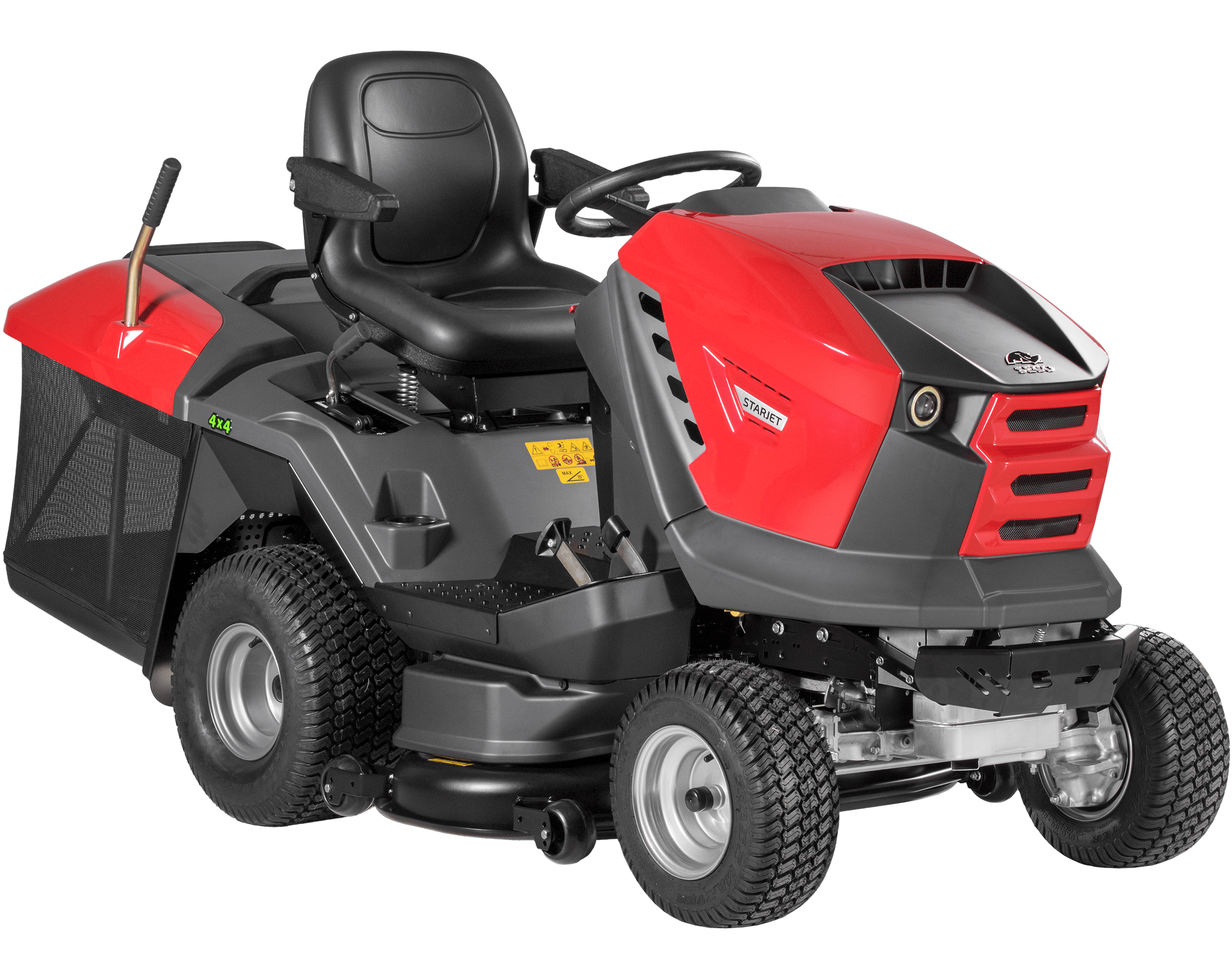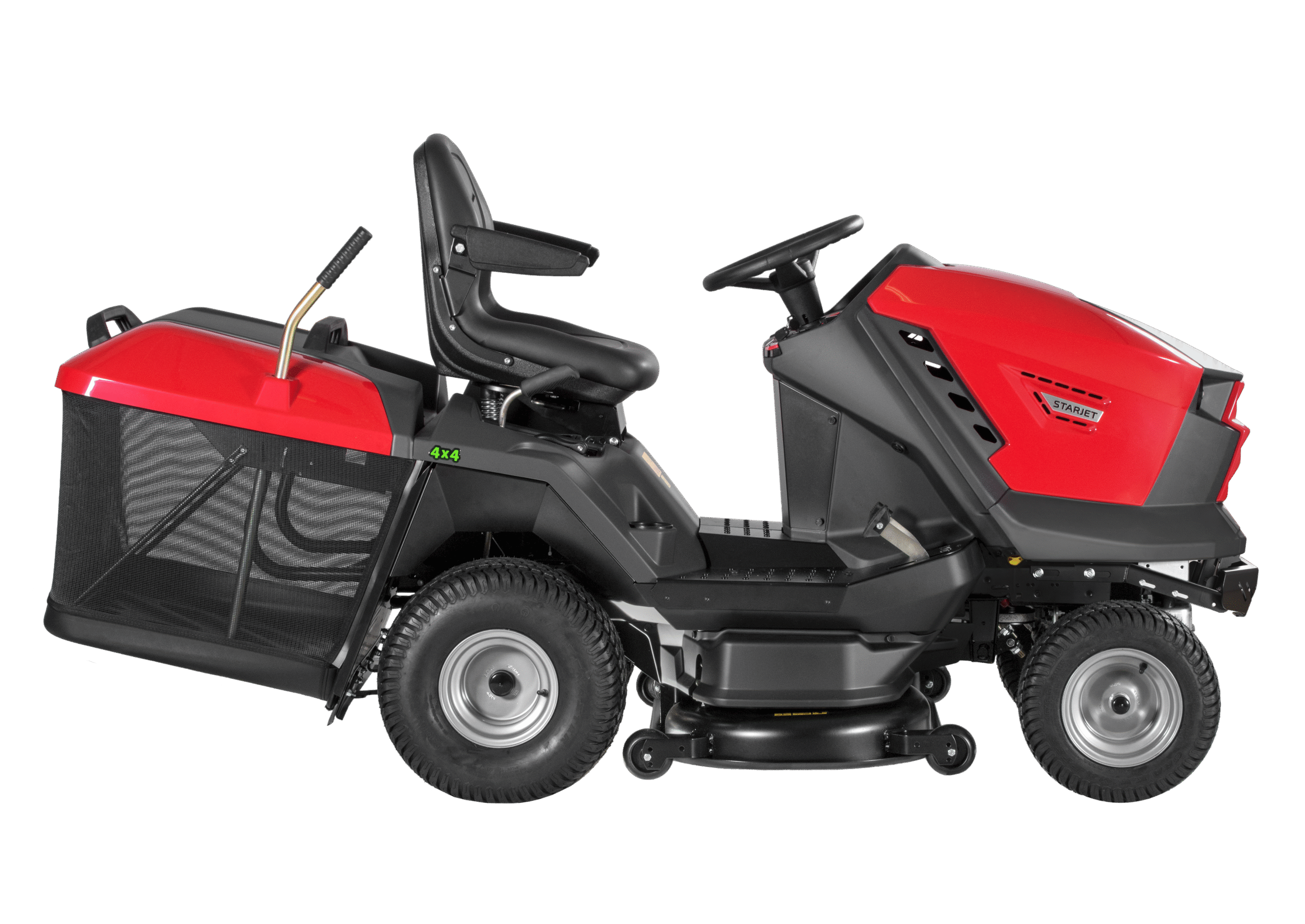 Model Starjet P4 4×4 vznikl jako reakce na rostoucí poptávku po cenově dostupném zahradním traktoru, který by si snadno poradil i se sekáním trávy ve svažitých a náročných terénech. Tento model, vycházející z osvědčené konstrukce Starjetu P4, je vybaven pohonem všech čtyř kol (4×4), což mu poskytuje vynikající trakci a stabilitu, i když se pustíte do strmějších svahů.