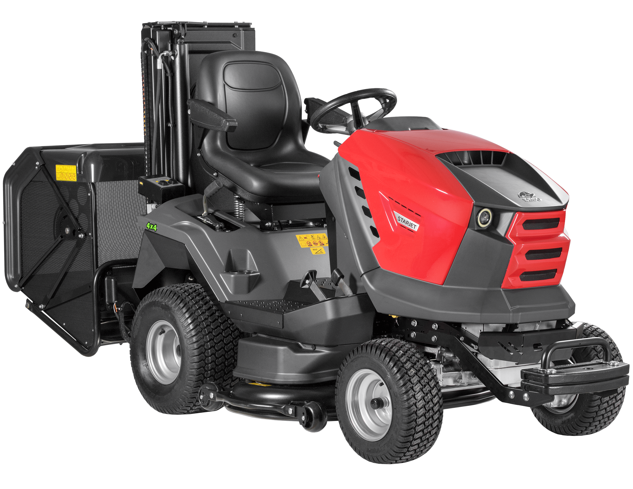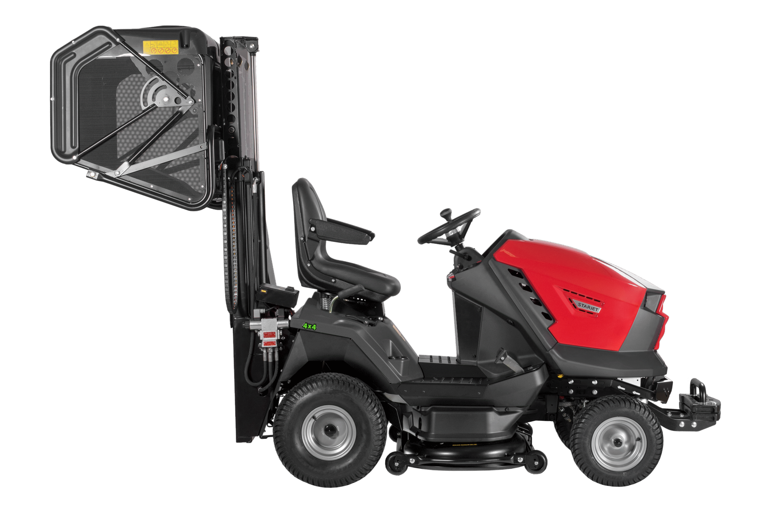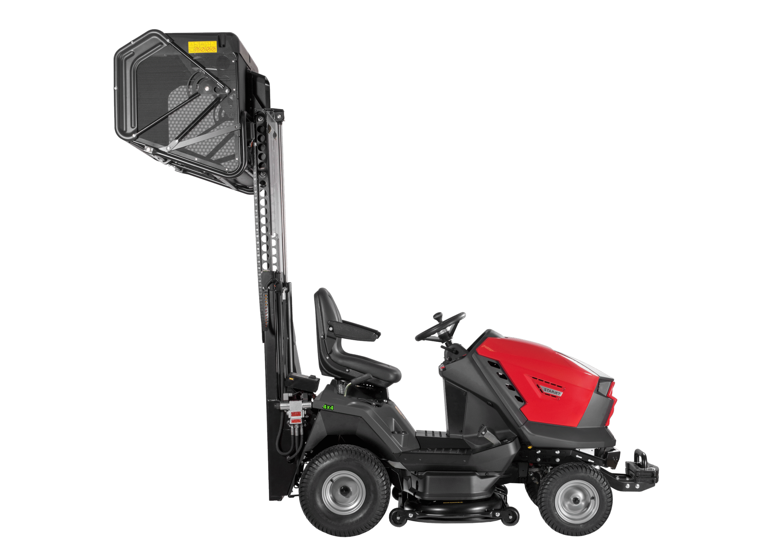 Model Starjet P6 4×4 PRO kombinuje všechny přednosti modelu Starjet P6 PRO s jednou klíčovou funkcí navíc – pohonem všech čtyř kol. Tato inovace umožňuje nasazení traktoru v těch nejnáročnějších terénech a poskytuje dokonalou trakci i v obtížných podmínkách. Díky tomu je Starjet P6 4×4 PRO ideální volbou pro obce, firmy a profesionální údržbáře, kteří se specializují na údržbu rozlehlých zelených ploch a potřebují stroj, který zvládne jakýkoli terén.