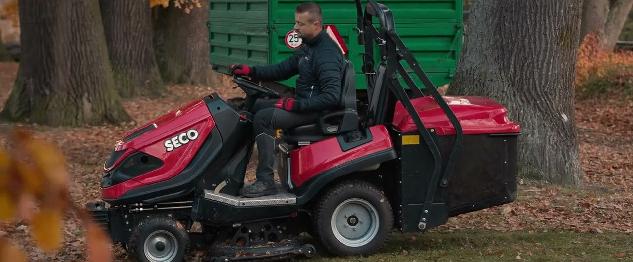 Sběr listí Valdštejnská lodžie Jičín – profesionální žací traktor SECO MP 122D